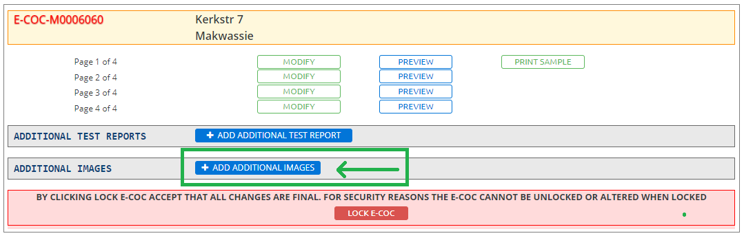 Supplementary pages are essentially optional extras that allows you to add images to your E-COC. Like with the rest of the E-COC page numbers will increment based on the number of pages that you add.